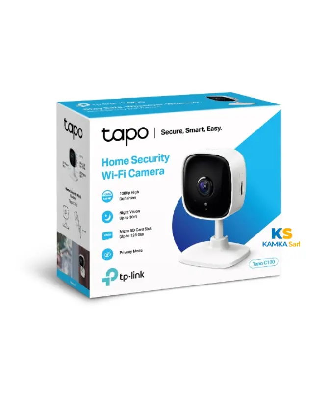 La Tapo C100 est une caméra de surveillance intérieure WiFi avec résolution 1080p Full HD, vision nocturne avancée et fonctionnalités intelligentes pour la sécurité domestique.